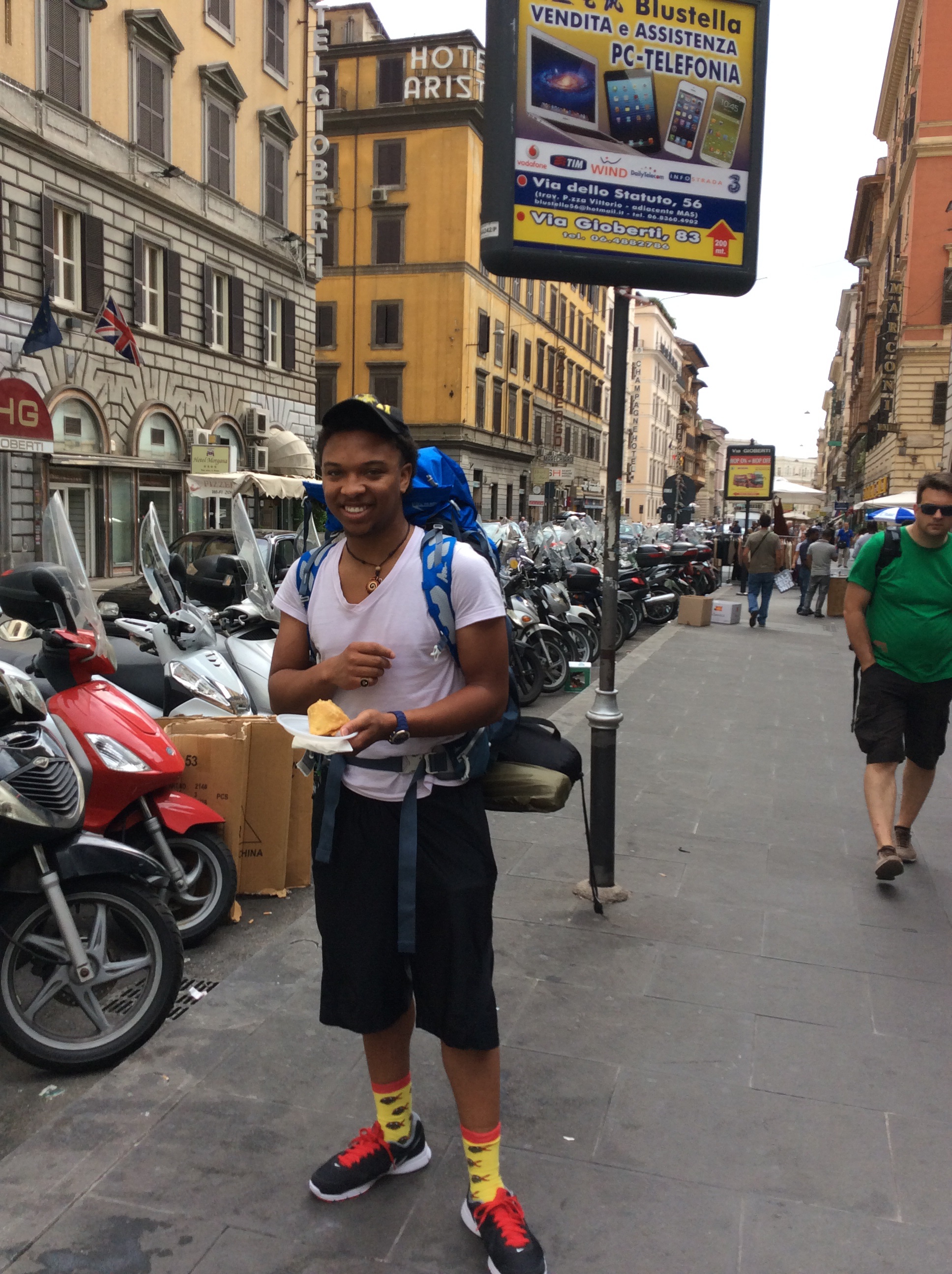 Vegetable samosas in Rome? Yes!!!!Don’t you love his ninja turtle socks?All I need to travel- my skittles, some gum, a travel book, and standby tickets. Mom you know me too well. Thank you for the sweets! XoxoThe hunger games lol